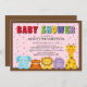 Nosso convite para Chás de fraldas da selva apresenta os mais bonitos animais da selva de bebês... leão, girafa, tigre, elefante do hipopótamo, colocado sobre um fundo festivo rosa com uma fronteira marrom. Totalmente personalizável! Itens de papel correspondentes, incluindo adesivos disponíveis
