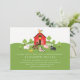 Chá de fraldas moderno de animais de exploração com celeiro vermelho com animais de exploração em pastagem verde. Sacudir nosso adorável convite para o chá para ver uma coordenação de gingham vermelho atrásPerfeito para um chá de fraldas de meninas, chá de fraldas de meninos ou chá de fraldas neutro em relação a gênero.