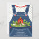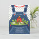 Convite para Chás de fraldas de fazenda com o par mais bonito de macacões para bebês com um celeiro vermelho e animais de exploração. Chá de fraldas de Meninos Exclusivos.