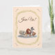 O design de Convite à Chá de fraldas de de Animais Enchidos Enchidos Enchidos Enchidos Enxerga a imagem de animais empalhados adoráveis reunidos contra um fundo bege na frente, prontos para receber o Bebê. O Dentro apresenta a sua mensagem personalizável em caracteres castanhos. A design é rodeada por folhas verdes de palma. Teddy Bear faz outra aparição nas costas. Projetado para acompanhar o Chá de fraldas de animais bem acolhidos Obrigado Cartões e acessórios.
