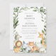 Convide o seu convidado com os nossos elegantes e modernos animais safari. O convite para chás de fraldas contém animais verde eucalipto garland e aquarelas safari. Personalize com seus detalhes de chá de fraldas em layout simples e fonte elegante de estilo manuscrito.