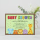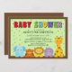 É um convite para Chás de fraldas da selva... os mais bonitos animais da selva de bebês... leão, girafa, tigre, elefante hippo colocado sobre um fundo verde festivo com uma fronteira marrom da moda. Um chá de fraldas perfeito convida para um chá de fraldas neutro em termos de gênero. Totalmente personalizável! Itens de papel correspondentes, incluindo adesivos disponíveis