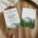 Que comece a aventura! Este convite para chás de fraldas rústico apresenta uma paisagem de montanha de cor d'água, pinheiros e uma tipografia elegante para uma celebração inspirada na natureza. Perfeito para os pais que amam o excelente ao ar livre e estão prontos para sua próxima grande jornada — acolhendo um pouco!
