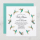 Este convite para o chá de fraldas inclui beija-flores de cauda rufa e beija-flores de garganta feroz. Personalize-o com os detalhes do seu chá de fraldas usando os modelos fornecidos. As cartas se invertem a uma bonito sombra de chalé. O estilo da fonte, a cor da fonte e o tamanho da fonte podem ser alterados clicando em "personalizar mais".