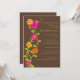 Comece seu evento com nosso convite do Chá de fraldas Trendy & Modern Brown apresentando um pássaro cantor rosa quente em uma vinha verde com flores amarelas, laranja e cor-de-rosa. Simplesmente personalize nosso convite com suas informações de chá de fraldas e você estará pronto para ir. © tracy an digital art