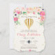 Um balão de ar quente coberto de ouro cercado por um quadro de flores florais cor-de-rosa e laranja do jardim e reluzente dourado. Para cima e para fora!