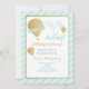 Para cima e para fora! Chá de fraldas com balão de ar quente em ouro e sotaque aqua/menta.