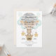 Um ursinho de cor aquosa com chá de fraldas de balão de ar quente em um marrom neutro por sexo e azul com a expressão: "podemos esperar muito". Um estilo giro de tendências para seus convites!