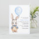 Celebrar a mãe a ser com o nosso convite para o coelho azul de balão. O design apresenta um belo coelho aquoso, de cor aquosa, segurando um balão azul pastel, fazer-o na moda e charmoso. Use as ferramentas de design para personalizar o texto. Também disponível como download digital.