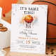 É hora do jogo! Celebre seu pequeno MVP com este convite de chá de fraldas temático de basquete, com basquete de aquarela. Este convite editável é perfeito para um chá de fraldas de código, um chá de menino de temas esportivos ou uma celebração de estrela de salto.