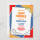 Boom! Pow! Celebre seu chá de fraldas no verdadeiro estilo de super-herói com este convite ousado inspirado em quadrinhos. Apresentando gráficos de pop de arte explosivos e fontes clássicas de quadrinhos, é perfeito para os futuros pais divertidos que querem fazer uma declaração.