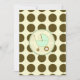 Um convite com um fundo de bolinhas castanho sobre o bege quente, com um acabamento verde claro. Personalize o texto marrom com detalhes do seu evento. O lado oposto é uma bolinhas sólida com uma carruagem de bebê verde dentro uma moldura em círculo correspondente.