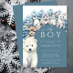 Este belo convite para o chá de fraldas de inverno inclui amigos animais árcticos, incluindo um urso polar, renas, pinguim, foca, coelho e lobo, com um pano de fundo de árvores de neve. O convite é feito sobre um fundo azul arquivado com as palavras "Oh Boy!" em uma fonte divertida no topo. A data, a hora e o local do chá de fraldas estão listados abaixo em uma fonte saborosa. Os adoráveis amigos animais árticos e o tema do inverno adicionam um toque de capricho e diversão, e o design geral é perfeito para celebrar a chegada do seu garotinho com seus entes queridos de uma forma festiva e animadora.