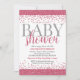 Convite para Chás de fraldas de brilho rosa e prat