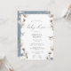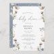Convite para Chás de fraldas de Caligrafia. Este convite espantoso é delicado e delicado com sotaques de flor silvestre e uma cor azul empoeirada para trás.