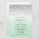 Chá de fraldas convite com brilho prateado, design e cor verde-d'água.