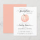 O convite para chás de fraldas orçamentalmente neutro para casais, com "A Sweet Little Pumpkin Is On Your Way" escrito em uma mistura de tipografia de cinzas e um roteiro de na moda, e uma linda cor d'água laranja de uma abóbora. Personalize os nomes dos futuros pais e os detalhes do chá em simples tipografia de cinzas. Especificar o sexo do bebê, se desejado (por exemplo, "está a caminho").