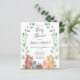 Convite para Chás de fraldas de Casais de Woodland de Orçamento. Convide a família e os amigos a celebrarem os pais a serem com este convite de aquarelas bonitinho e caprichoso. Esses amigos da floresta, raposa, guaxinim, ouriço, coelho e esquilo estão cercados por vegetação rústica. Personalize este convite de Chá de fraldas com o seu nome e detalhes. Porque nós criamos nosso próprio trabalho de arte você não encontrará essa imagem exata de outros designers. Original Watercolor © Michele Davies.