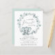 Casal neutro em relação ao gênero, favorável ao orçamento, convite para chá de fraldas com "Um doce pequeno amendoim está a caminho" escrito numa mistura de tipografia moderna e um roteiro de na moda com uma batida cardíaca, e uma aquarela de um lindo elefante verde em menta pastel em uma coroa de verde-sábio eucalipto verde-verde. Adicione os nomes dos pais a serem e os detalhes do chá em tipografia simples.