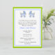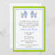 O convite para o chá de fraldas do Na moda é feito em branco, com gráficos bonito de dois filhotes azuis virados um para o outro, decorando o topo. Bonito quadro azul e verde ao redor do exterior da placa, com texto preto e azul. O texto está pronto para personalizar, para atender às suas necessidades de evento de bebê. Encantador convite aos pais para serem queridos.