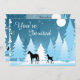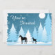 Este convite para chás de fraldas neutro personalizado apresenta uma mãe e um galo (inchados ou potros) silhuetas e cavalos bebês, com um cenário de madeira de inverno, a tremer na neve à luz de uma lua de cheio.