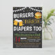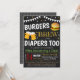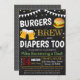 Chá de Fraldas, barrigas, cervejas e adoráveis é excelente de jogar um chá de pai divertido! Apresenta um fundo de quadro e gráficos bonitos! Um convite de excelente para usar ao hospedar uma festa de SAÍDA GRILL OUT de CHURRASCO casual divertida (BABY-Q) para os pais, pai ou mamãe!