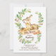 Chá de fraldas de madeira de cor aquosa, com uma adorável mãe e veado de bebê com galhos de pínus com fundo de uma pórnea bronca. Perfeito para um chá de fraldas para rapazes ou chá de fraldas neutro em termos de gênero