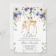 Rústica Chá de fraldas de cervos Florais Roxo Convite para o chá de fraldas de cervídeos com neutro sexo doce. Este design apresenta uma pomba e um peão, bem como um arranjo floral roxo e branco.