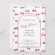 Convite para o chá de fraldas doce de cereja, doce e com coloração aquosa moderna. A parte traseira apresenta um padrão correspondente para uma ajuda extra da doçura. Personalize o texto para se adequar à sua celebração. Arte original de Nic Squirrell
