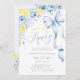 Adicione um toque doce e charmoso ao seu chá de fraldas com o convite de aperto principal desta mamã em tons azuis suaves, com limões frescos e um delicado arco de fita. Projetado em uma estética coquete, é perfeito para celebrar a mamãe com elegância e alegria!