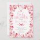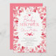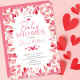 Querido Chá de fraldas Convite com um quadro cardíaco cor-de-rosa e vermelho, colocado sobre um Sacudir branco de fundo nosso doce convite para ver uma coordenação de volta.