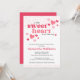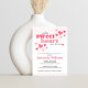Este belo convite de chá de fraldas com corações em tons de rosa, um borrão de pequenos corações na borda de cima e de baixo com a frase "um pouco de amor está a caminho" irá certamente aquecer os corações de seus convidados. Personalize este convite com o nome da futura mãe e o restante dos detalhes do chá.