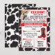 Sim! Celebre o estilo do cowboy com este super fofo convite de festas do Cowboy com uma ilustração vintage de um lindo cowboy com um chapéu grande, bota de cowboy e tipografia divertida contra um fundo com padrão de vaca.