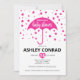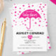 Nosso Convite para Chás de fraldas é um convite moderno projetado com um guarda-chuva clássico com pequenos corações em cascata o convite perfeito para o seu Chá de fraldas Dia de os namorados! Disponível em rosa ou vermelho.