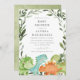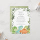 Convide seu convidado com nossos elegantes e modernos dinossauros. O convite para chás de fraldas apresenta verde eucalipto garland e dinossauros aquosos. Personalize com seus detalhes de chá de fraldas em layout simples e fonte elegante de estilo manuscrito.
