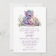 Adorável convite de chá para a menina do amante da fantasia, com belos gráficos de um dragão bebê roxo sentado em flores, contra um fundo branco. Personalize o texto roxo colorido para o seu próximo evento.
