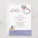 O convite para o chá de fraldas bonito feito em branco, com uma banda de lavanda, através dos gráficos de desenho animados de libélulas coloridas. Personalize todos os campos de texto para o seu evento divertido.