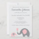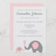 Convite para Chás de fraldas de elefante em rosa e