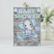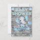 Este belo convite é uma obrigação para o seu chá de fraldas. Possui uma fonte de balão de ar quente, elefante adorável, borboletas delicadas em um acabamento rústico. A parte de trás da carta apresenta um adorável elefante adormecido em uma nuvem.