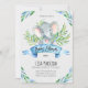 Convite para Chá de fraldas de elefante azul com design colorido safari perfeito para sua festa de chá de fraldas.