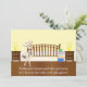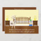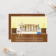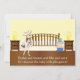 Convite para Chás de fraldas de enfermaria. Apresentando uma mãe vestida com um lindo impressão de retrô amarelo e marrom em um pequeno berçário de recém-nascidos.