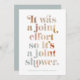 Como é um esforço conjunto, também deveria ser um chá conjunto! Este convite divertido e pastel é perfeito para um chá de fraldas casal. Personalizar com o nome do casal, localização, data etc. Elementos de coordenação disponíveis.