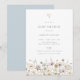 Convite para Chá de fraldas de flor selvagem. Flores silvestres coloridas, tipografia de cinzas escuras quic e coordenação de respaldo de cor azul.