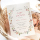 Chá de fraldas com uma camada aquosa de flores silvestres e biberões. Personalize com suas informações para que a mãe esteja.