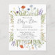 Convite para chás de fraldas bonito, elegante, orçamental e neutro em termos de gênero, com aquarelas de flores silvestres e "Baby in Bloom" escrito em um roteiro na moda.