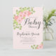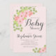 As flores cor-de-rosa pastel em meio a verduras criam um belo design para este convite para o chá de fraldas. Este convite bonito e divertido é a forma perfeita de convidar outros para um chá de fraldas para você ou para a família e amigos.