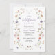 Um belo convite para chás de fraldas com o tema da flor silvestre apresenta uma borda aquarela de flores silvestres e borboletas. Personalize com suas informações ou clique em "Clique para personalizar mais" para editar estilos de fonte, tamanho e cores.