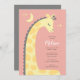 Convite para Chás de fraldas de Fundo Rosa Giraffe