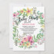 Convite moderno para chá de fraldas com na moda de aquarela rosa e flores amarelas com letra tipográfica escrita escrita à mão. Fácil de personalizar e personalizar com as informações do seu chá de fraldas. Visite nosso compro para ver os itens correspondentes e nossa grande seleção de convites para chás de fraldas de meninas contemporâneas.