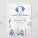 Este adorável convite para um chá de fraldas mostra criaturas marinhas encantadoras de aquarela, destacando um par de golfinhos no topo simbolizando os gêmeos. Se você precisar de alterações no design, como cor, texto ou fonte; entre em contato conosco em seamistmail@gmail.com. Adoramos fazer parte de suas memórias felizes.